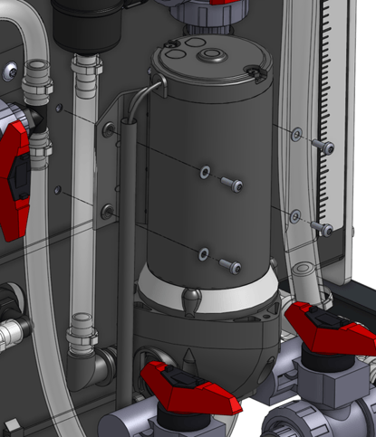 - Remove the pump from the wall by unscrewing the four M4 Torx screws (T20)