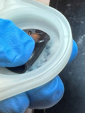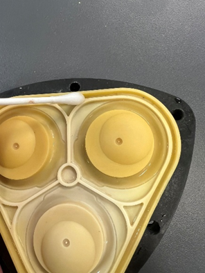 - Inspect the diaphragm membrane for damage and contamination. Rinse it with water and remove debris with a cotton swab if necessary.