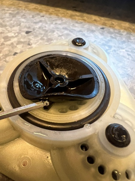 - Detach the check valve assembly from the diaphragm membrane by gently pulling it off.