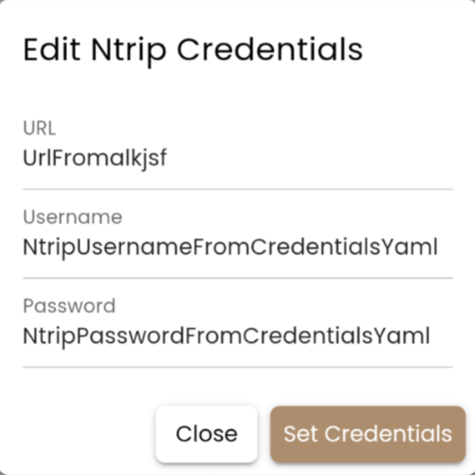 While connected to the robot navigate to the "Settings" tab,and chose the "GNSS" drop down. Click the "Ntrip Credentials"