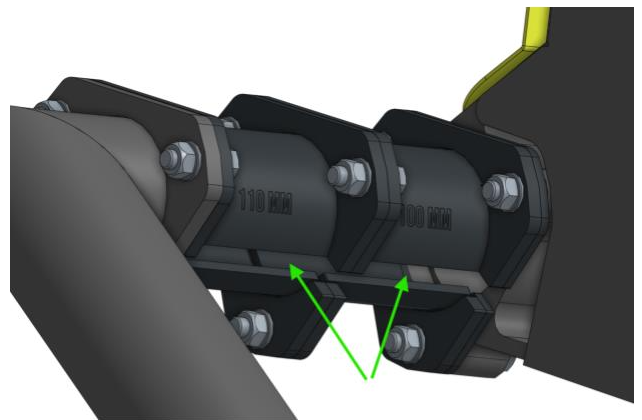 Make sure you have the right bolt ready to be able to attach the side frame again, while adjusting with the new spacer. The new spacer must be attached with the associated M10 bolts and nuts. 16/17mm pipe/wrench.